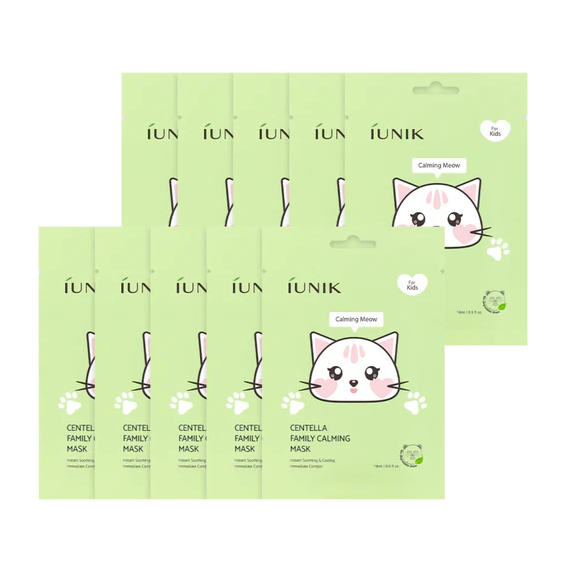 A mask pack designed to perfectly fit children’s faces. With a fun cat-shaped sheet, kids can enjoy skincare playtime with mom. Bring both laughter and skincare together. Made with 100% plant-derived cellulose vegan sheet. Infused with a cooling, lightweight soothing essence that instantly calms sun-stressed and heat-irritated skin with a burst of refreshing hydration. Packed with 7 calming Centella ingredients and a nourishing Vitamin B5 complex, the soothing essence quickly relieves sensitive skin while keeping it hydrated and protected.